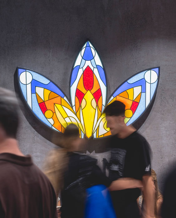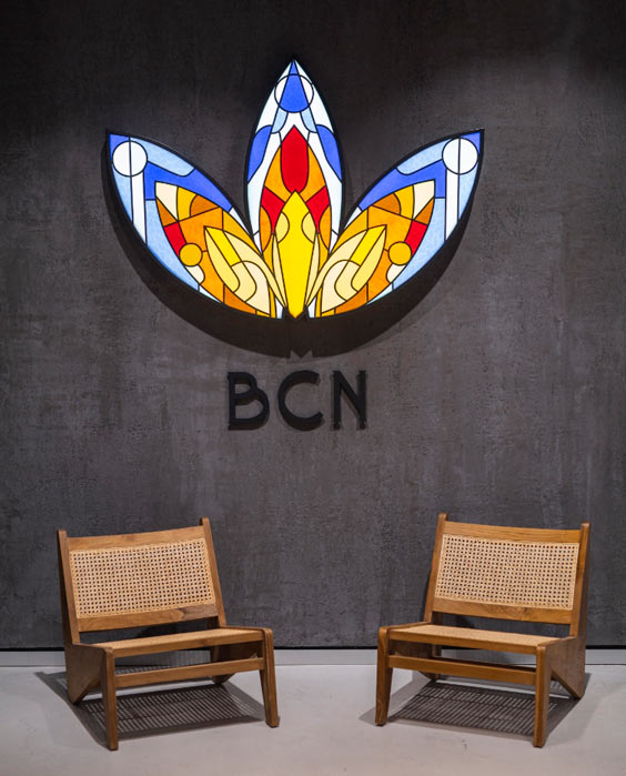 Recuperamos el trabajo de los maestros de Barcelona junto a los que diseñamos una vidriera inspirada en la herencia de la ciudad. Incorporamos en distintas superficies el Panot de Gaudí, con su mosaico hidráulico hexagonal, presentes en el propio Passeig de Gràcia.