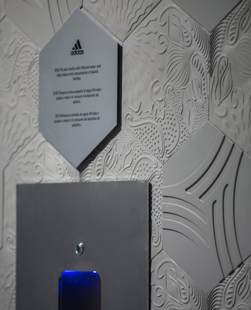 Inspirándonos en la geometría de la ciudad o en el «Panot de Barcelona», la flor que forma parte del pavimento de sus calles, incorporamos elementos gráficos icónicos de la Ciudad Condal en distintos espacios de la tienda.