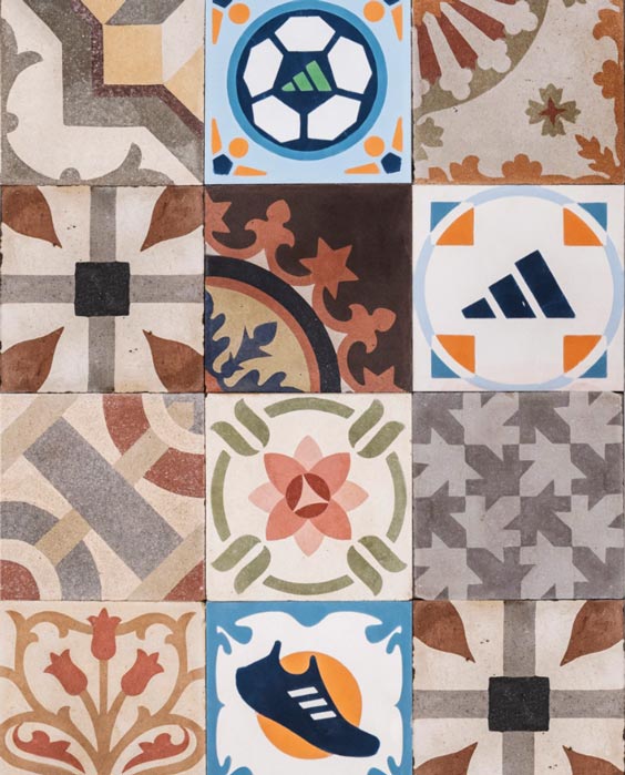 Queríamos convertir el espacio en «La casa de los barceloneses», por eso recuperamos y restauramos baldosas hidráulicas de distintas viviendas de Barcelona y diseñamos nuevas piezas personalizadas.