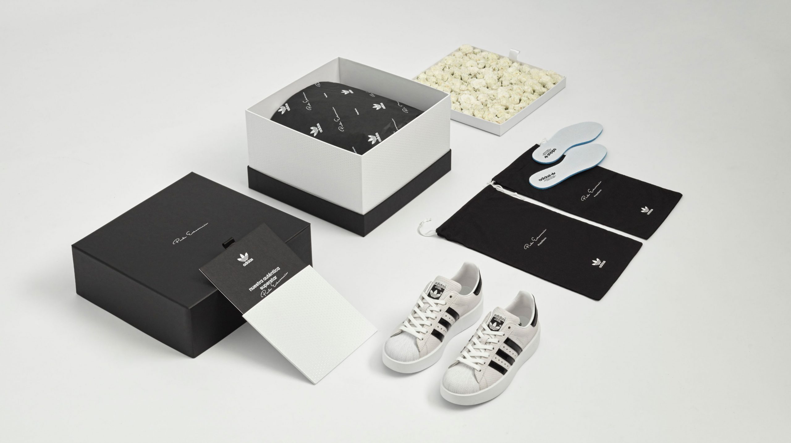 Basamos nuestro concepto en el modelo Superstar, conocido por la sencillez y versatilidad de sus colores. Black & White. En su interior, colocamos 40 rosas frescas inspiradas en la naturalidad y dulzura de la actriz.
