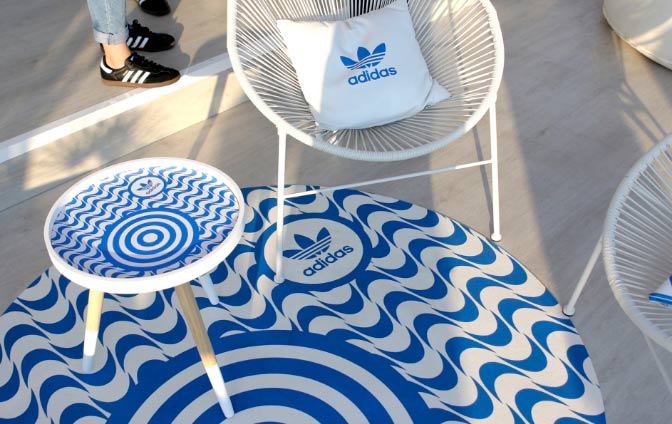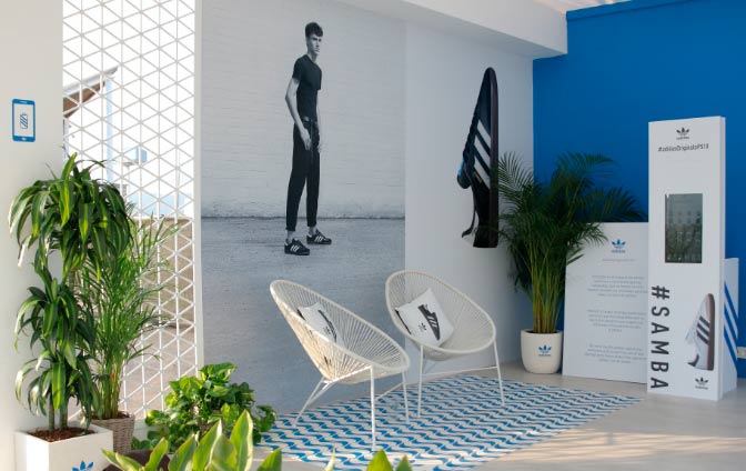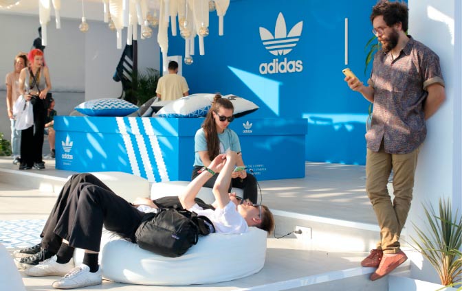 Con la silueta Samba como protagonista, adidas nos pide realizar un stand de Originals en el que los asistentes pudieran recargar pilas, reunirse y disfrutar de momentos de relax y amigos durante el festival.
