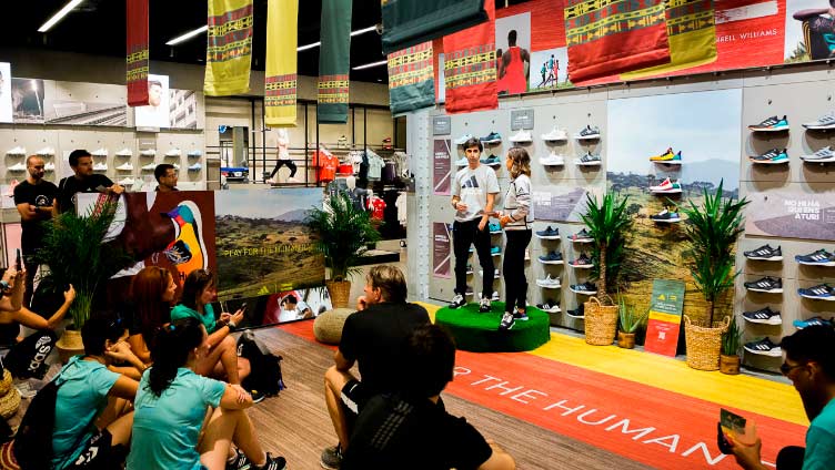 Organizamos un evento y personalizamos el espacio siguiendo el concepto de la campaña. Colores cálidos y texturas étnicas, inspiradas en los runners africanos, líderes en la disciplina.