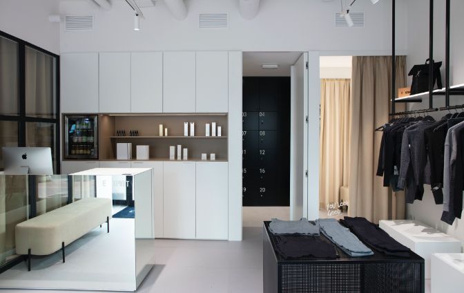 Yoga Studio & Boutique. Un espacio de estilo soft, urbano y elegante donde predominan los colores neutros y acabados mate. Para meditar, sí. pero con flow.
