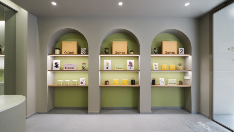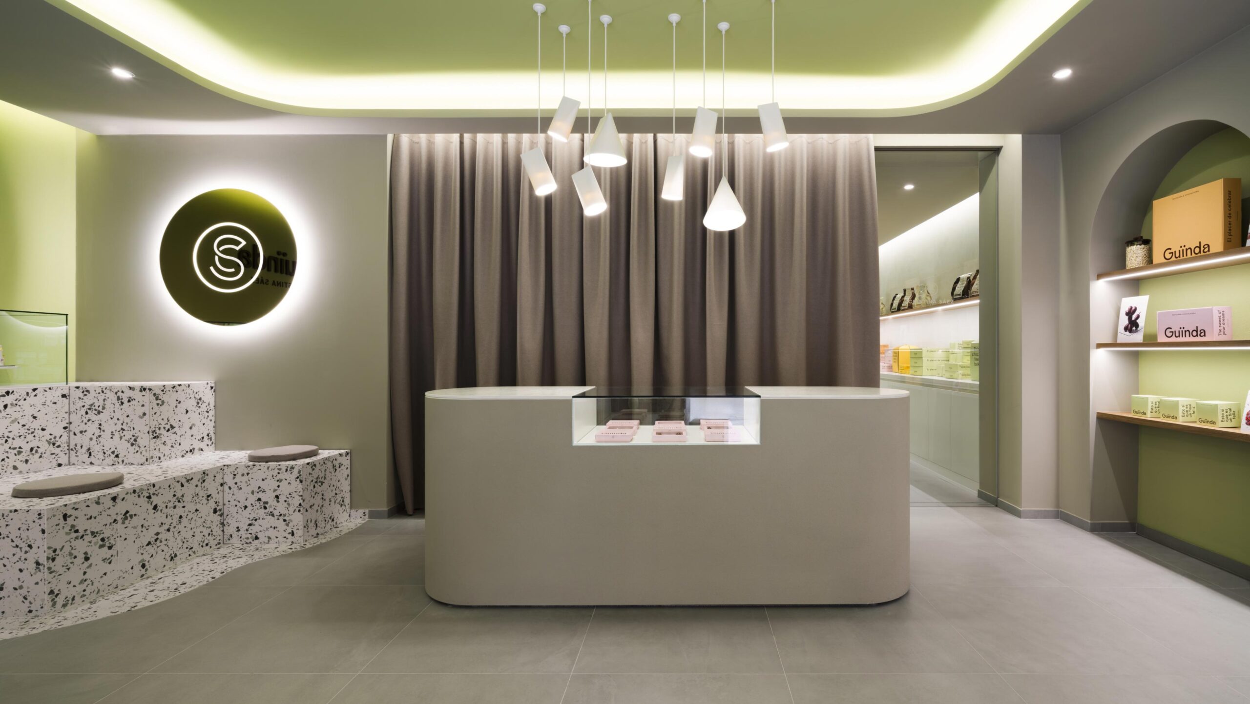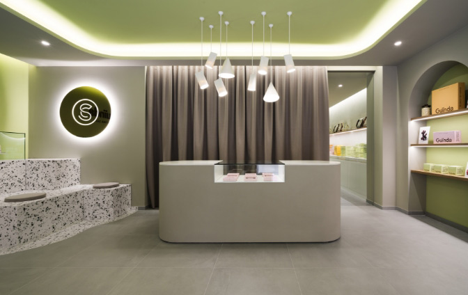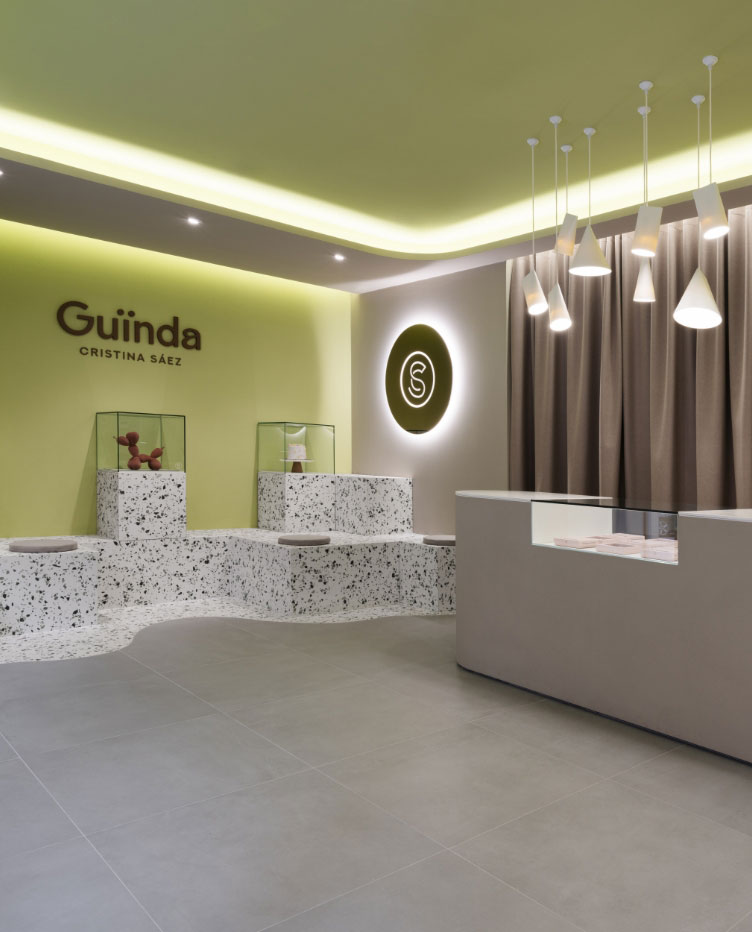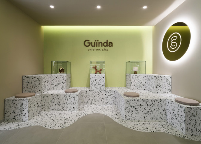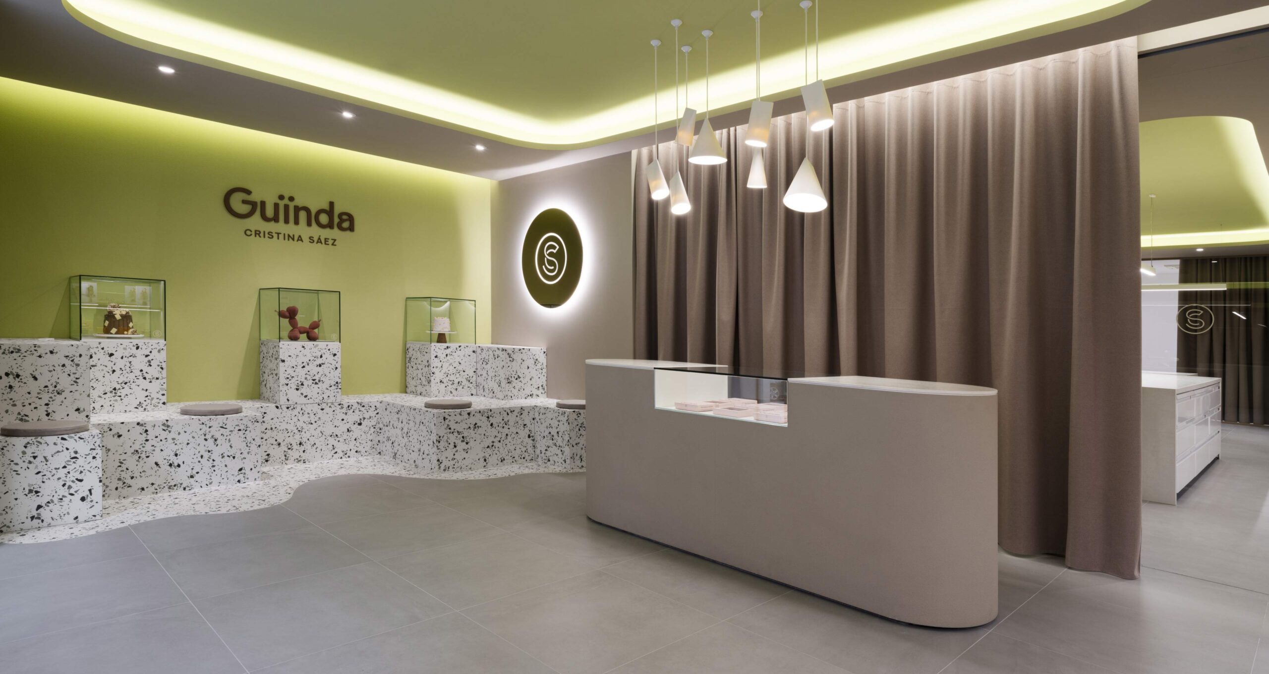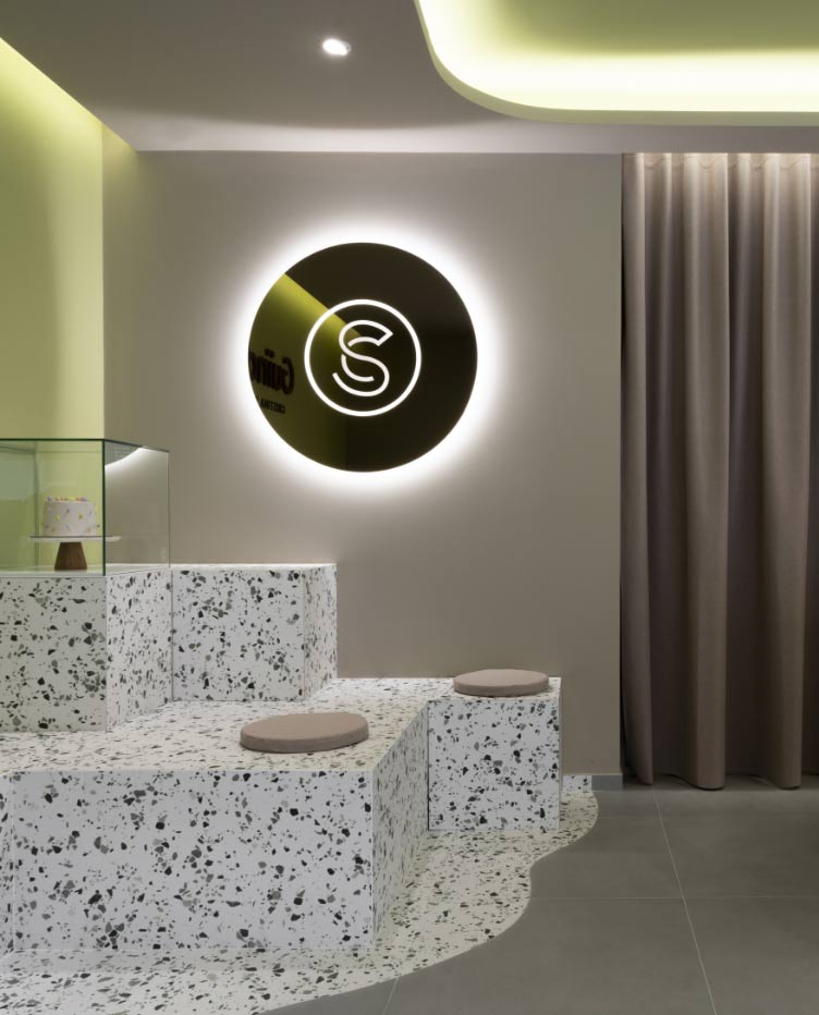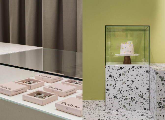 A través de las texturas como el terrazo y formas redondeadas en el mobiliario, simulamos la cremosidad y calidad de nuestros productos. Aportando volumen en forma de grada, delimitamos la zona de compra dando protagonismo a la exposición de producto.