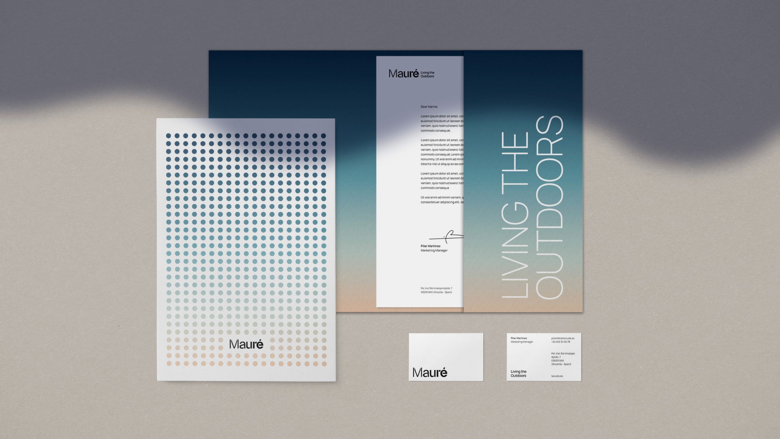Trasladamos el concepto de la evolución de la luz a todas las piezas de la identidad corporativa, con la evolución del grosor de la tipografía en el logo y las imágenes de ambiente.