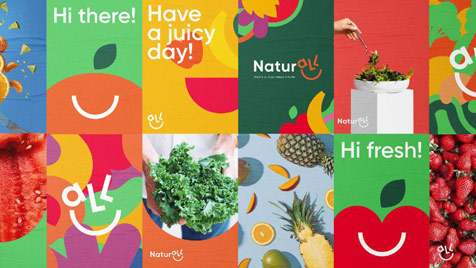 Happy day, happy fruits! Desarrollamos un sistema visual orgánico y versátil. Formas dinámicas, una gama cromática llena de color y un tono de voz cercano y alegre.