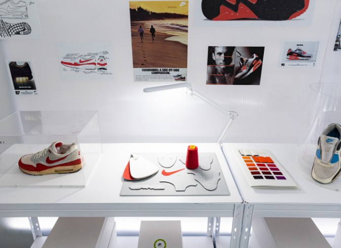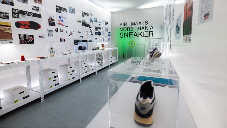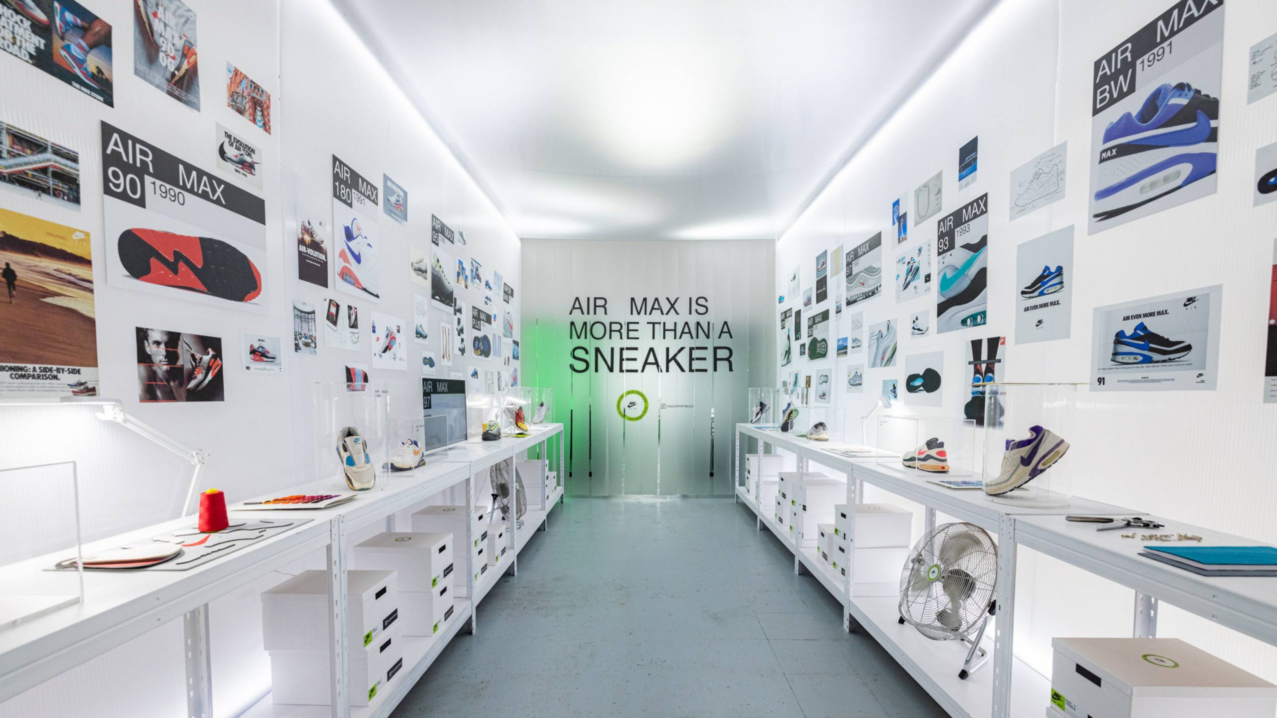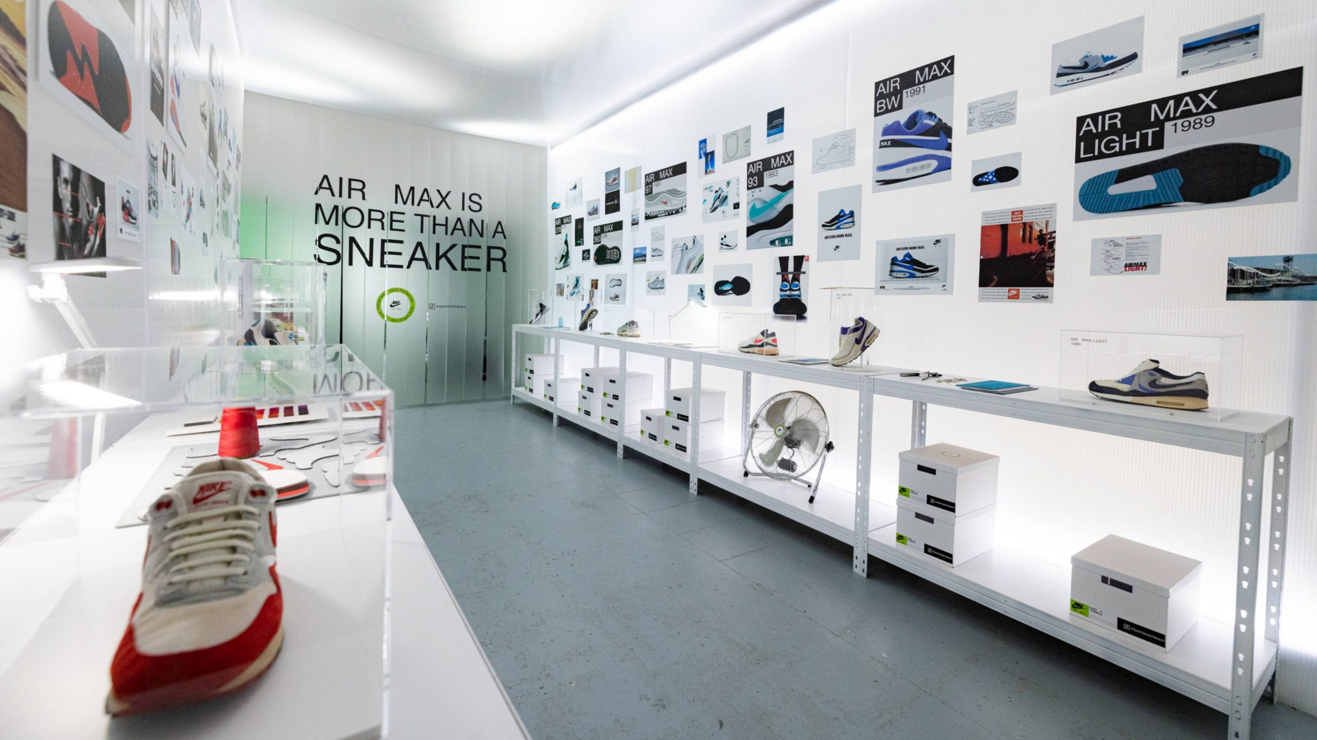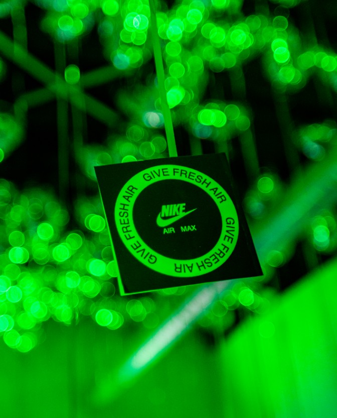 En la entrada, unos globos generaban un fondo perfecto como photocall dando la bienvenida a los asistentes. Posteriormente nos adentrábamos en el el interior de una burbuja de luz en la que nos encontrábamos con bocetos y materiales de la zapatilla junto a una exposición de modelos clásicos Air Max que Jumi, coleccionista que cuenta con más de 2000 zapatillas, nos cedió para el evento.