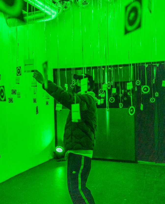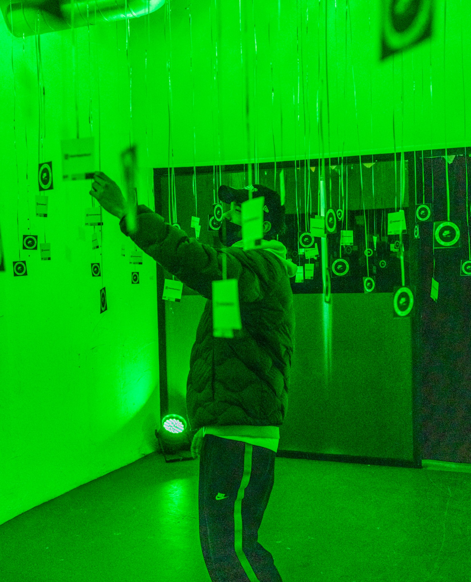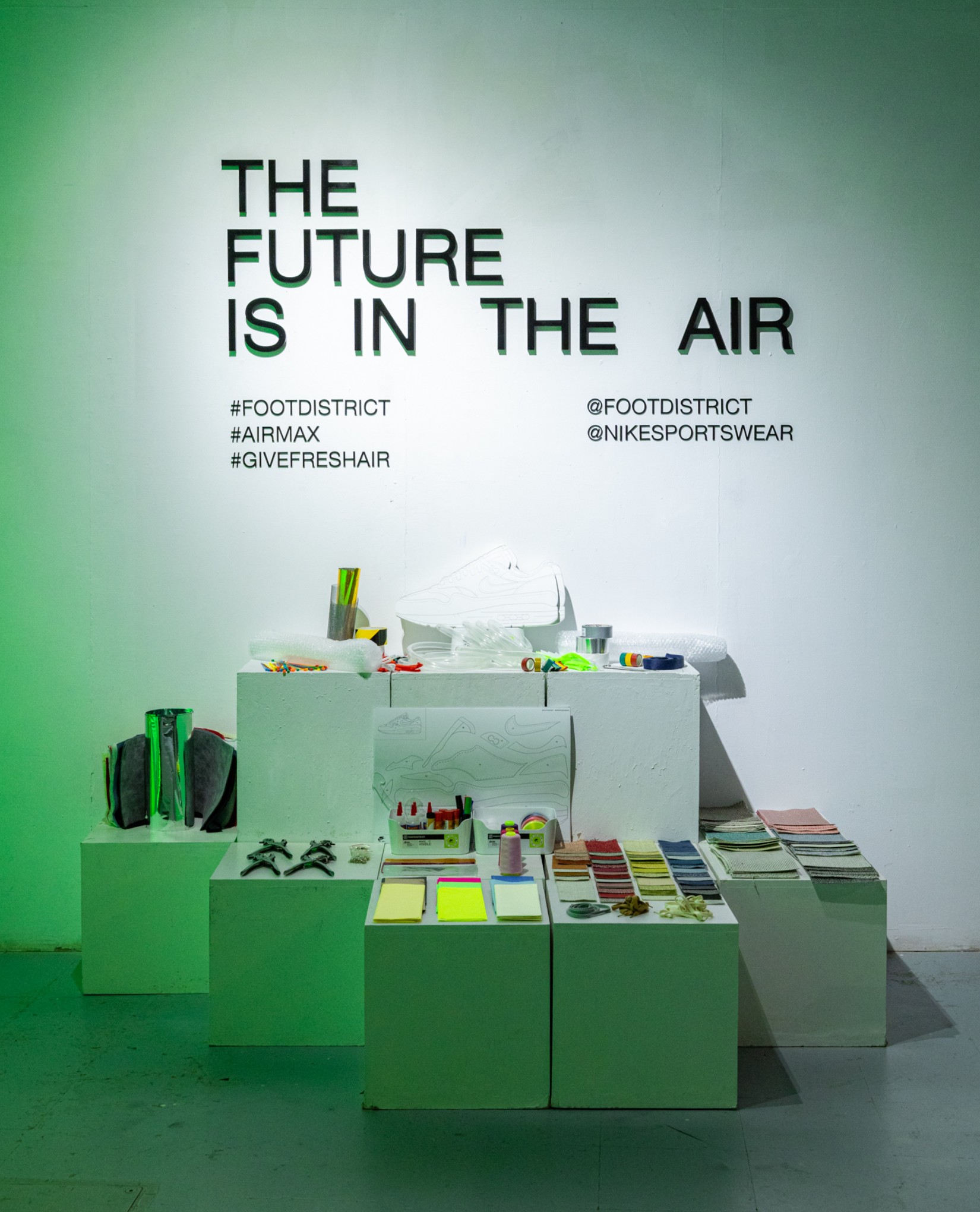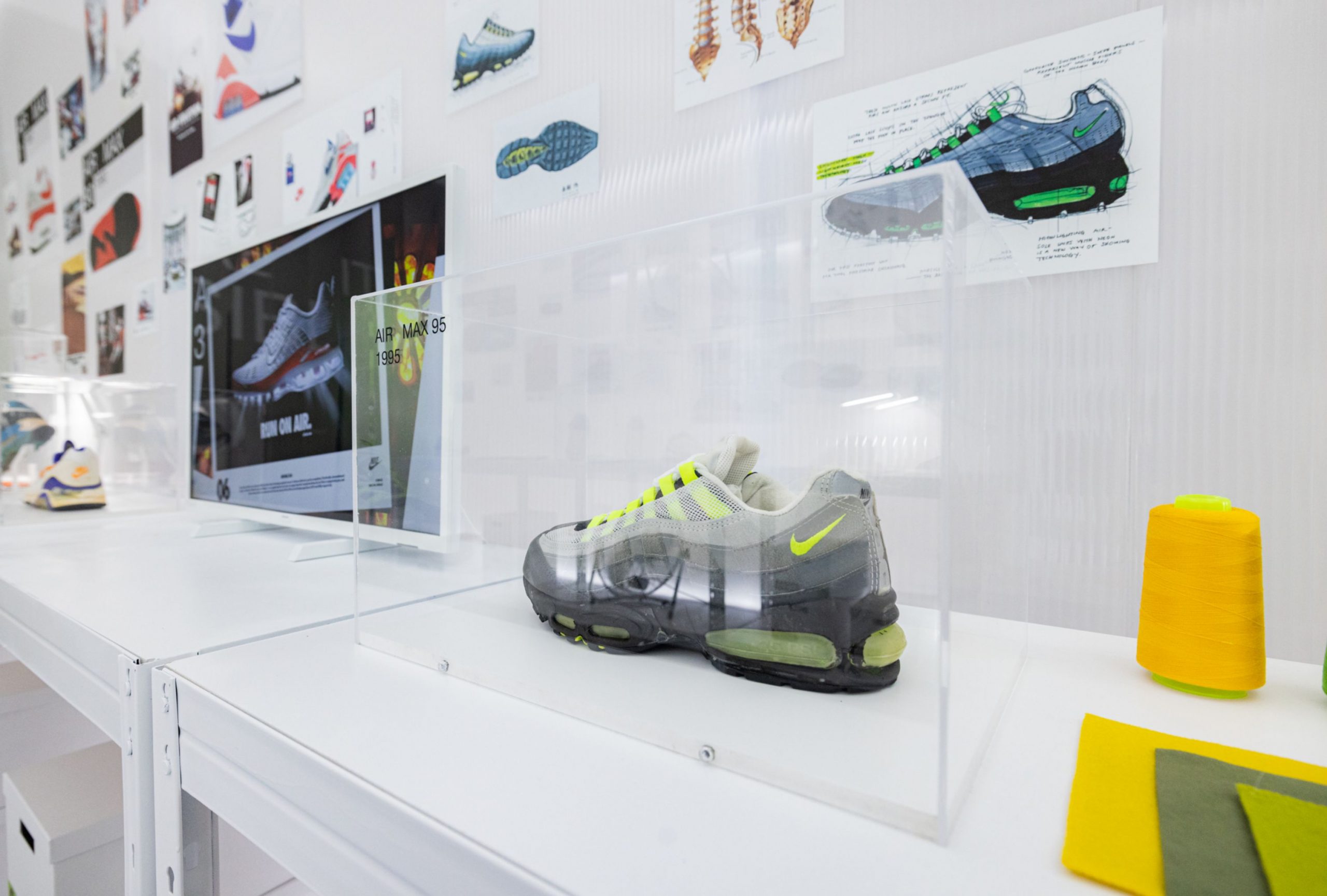 En la entrada, unos globos generaban un fondo perfecto como photocall dando la bienvenida a los asistentes. Posteriormente nos adentrábamos en el el interior de una burbuja de luz en la que nos encontrábamos con bocetos y materiales de la zapatilla junto a una exposición de modelos clásicos Air Max que Jumi, coleccionista que cuenta con más de 2000 zapatillas, nos cedió para el evento.