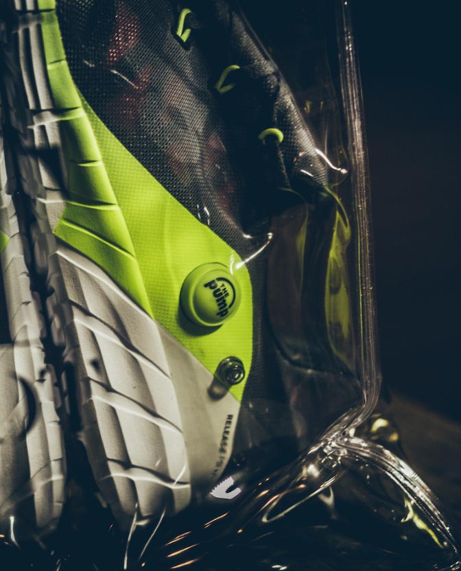 La tecnología The Pump, incorporada en la suela, se inspira en los neumáticos de alto rendimiento Z Rated para un control excepcional incluso en las curvas, aportando mayor flexibilidad, amortiguación y comodidad al usuario. Para presentar el producto a sus prescriptores, diseñamos una funda hinchable capaz de adaptarse a su contenido, inspirada en la cámara de aire que envuelve el pie.