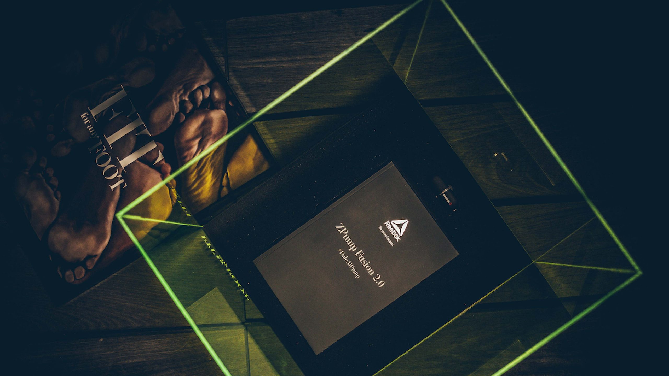 Utilizamos el característico color amarillo flúor de su suela como protagonista de nuestro packaging. Una caja de metacrilato donde presentar las zapatillas de una forma llamativa e innovadora, bajo el claim #DaleAlPump.
