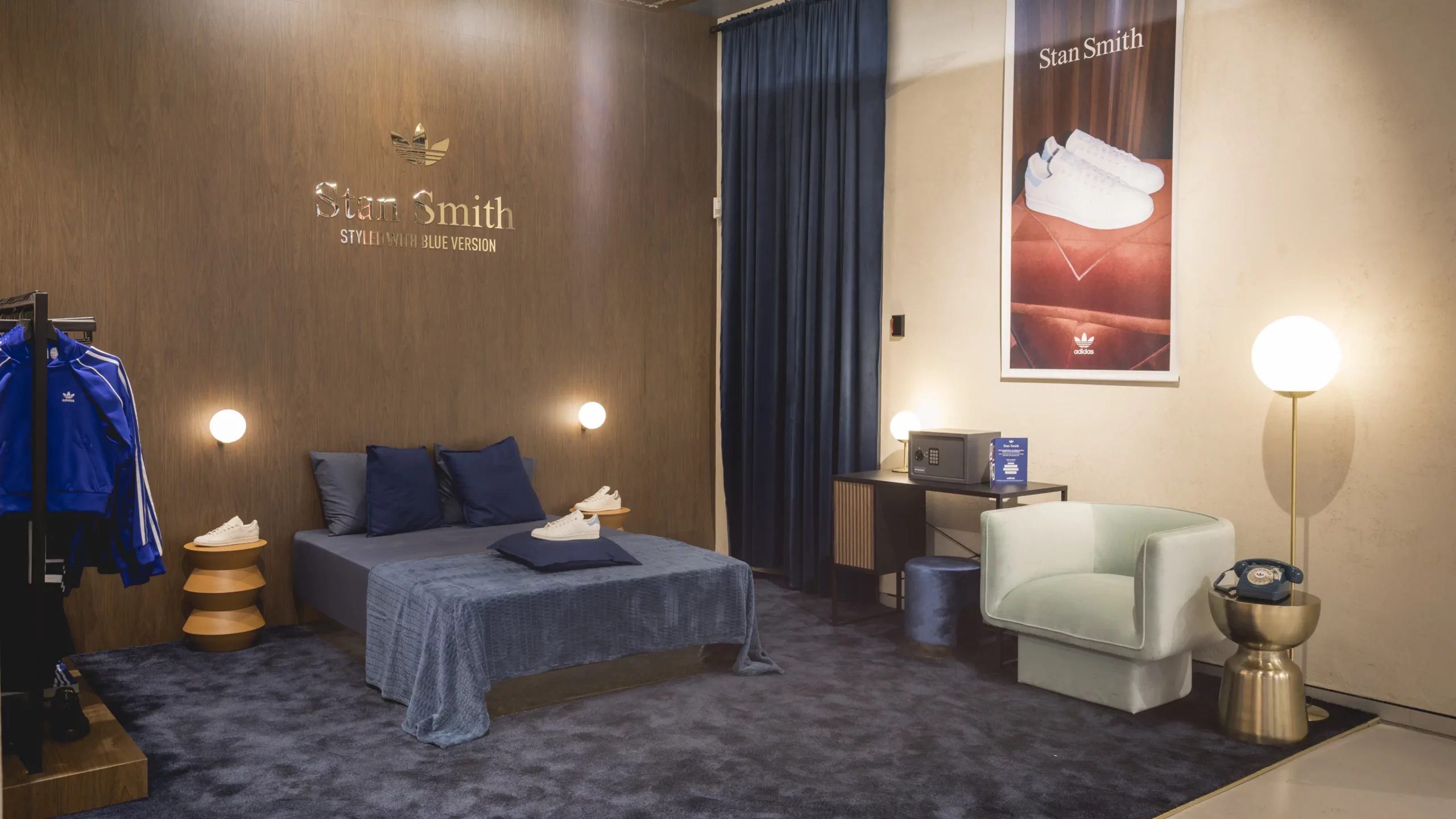 Una activación inspirada en el lujo, la estética 70’s y los colores vivos con el blue como prota. Convertimos la adidas Store Barcelona – Paseo de Gracia en un hotel de lujo, a full experience. Desde el mayordomo hasta la adidas Suite. Un espacio streetwear con acabados premium.