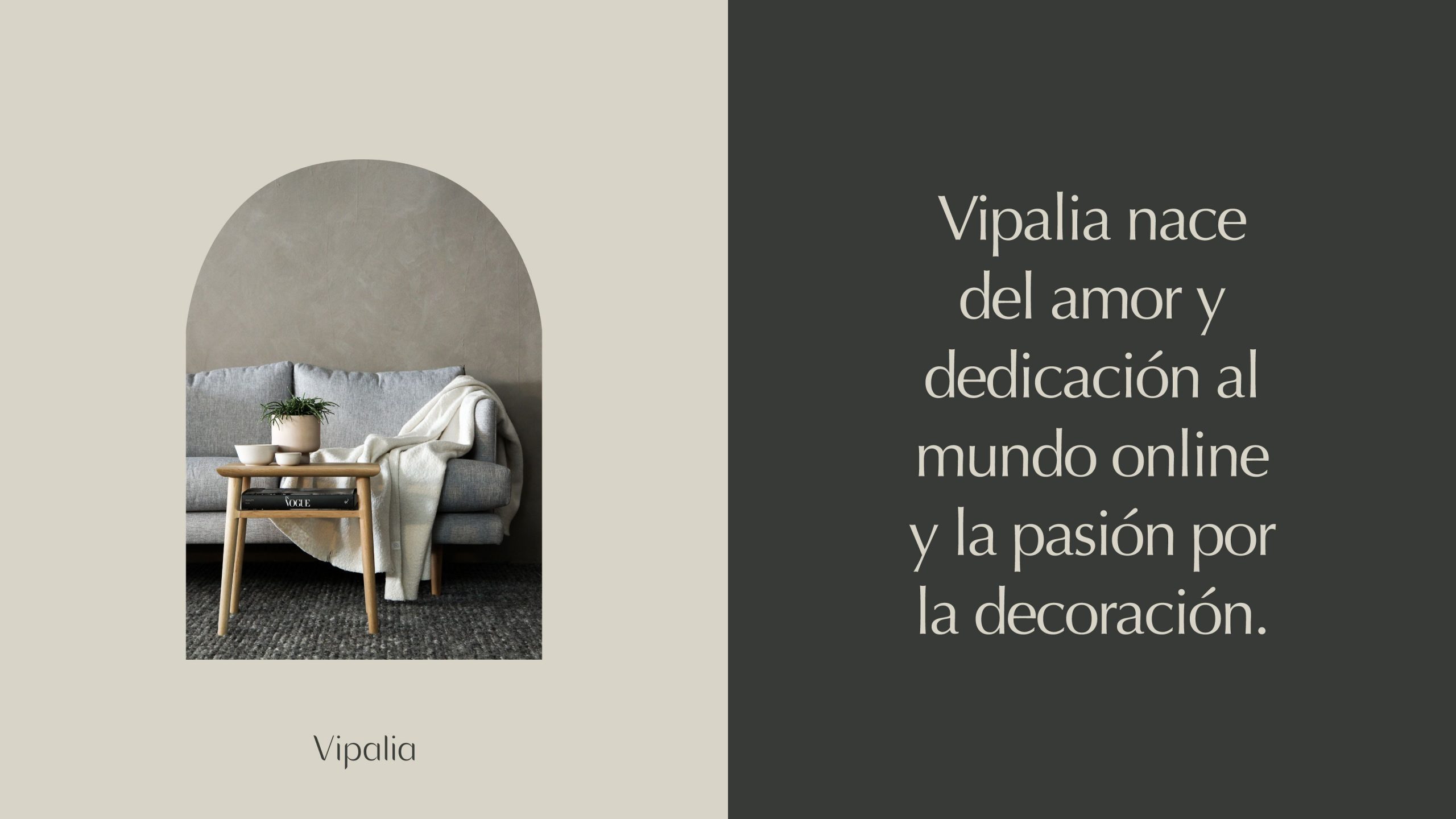 Vipalia es una nueva marca de mobiliario y complementos para el hogar que nace del amor al online y la pasión por la decoración. Trabajamos en la creación de su identidad de marca y soportes digitales con el objetivo de ofrecer una compra ágil y rápida.